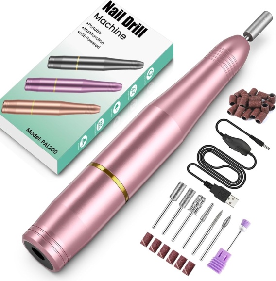 - Praktyczne wiertło do paznokci – w zestawie 1 profesjonalne wiertło do paznokci, 6 różnych wierteł do paznokci, 16 taśm szlifierskich i 1 szczotka. Elektryczny zestaw wierteł do paznokci może być używany do manicure, pedicure, polerowania, kształtowania, wygładzania skórek, usuwania paznokci akrylowych/żelowych lub pielęgnacji paznokci. Dbaj o swoje paznokcie w domu!