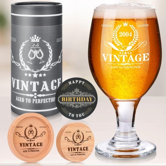 - 🍺 Spersonalizowana szklanka do piwa z 2004 roku: Ta spersonalizowana szklanka do piwa ma grawerunek z datą „2003”, co czyni ją wyjątkową pamiątką dla każdego młodego mężczyzny. Niezależnie od tego, czy pije swój pierwszy legalny drink, czy po prostu powiększa swoją kolekcję, ta szklanka jest zarówno funkcjonalna, jak i sentymentalna.