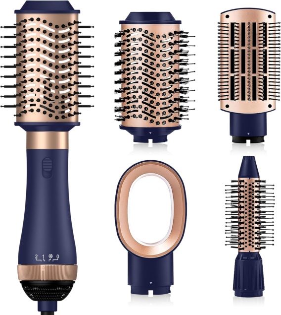 - Wielofunkcyjny zestaw do stylizacji włosów, który spełnia różne potrzeby stylizacyjne. Może być używana jako suszarka do włosów, szczotka do suszenia objętościowego, szczotka z gorącym powietrzem, suszarka do włosów z okrągłą szczotką i szczotka do prostowania. Wiele funkcji połączonych w jeden doskonały, praktyczny zestaw do stylizacji, pozwala sprawnie i oszczędzając czas uzyskać różnorodne, piękne fryzury.